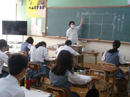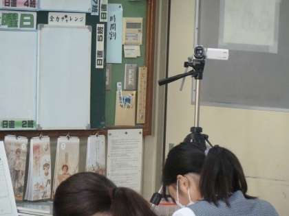 新しい研修の形(3年国語研究授業) 公開日 2020/09/08 更新日 2020/09/08 学校の様子 先生たちの授業研究のスタイルにも、ついに新しい形が出現しました。 今までなら、あちこちから先生方が参観に来られていましたが、授業を録画したものをそれぞれが視聴し、後日Zoomで協議を行うそうです。 今日は、3年生の国語の授業を録画中。 明日から修学旅行をひかえた3年生ですが、真剣な表情で取り組んでくれていました。