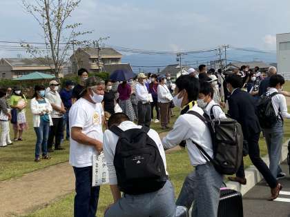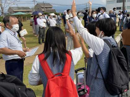 修学旅行 自分の「かつ」を探す旅 〜今日の出会い〜 公開日 2020/09/09 更新日 2020/09/09 3年生 天気は,薄曇りですが、無事に唐津に到着しました。本日,お世話になる民家の方々との出会いの風景です。名前を呼ばれて,元気に手を挙げる姿がいいですね!