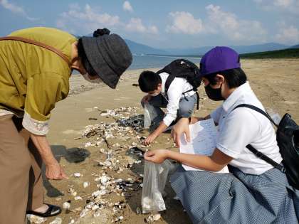 ホストファミリーさんと一緒に活動をしています。滝の名前は「見帰りの滝」です。名前の通り,帰る時にもう一度,振り返って見てしまうのでしょうか。それとも,この滝を見に故郷に帰りたくなるという意味でしょうか。それぐらい壮大な滝です。