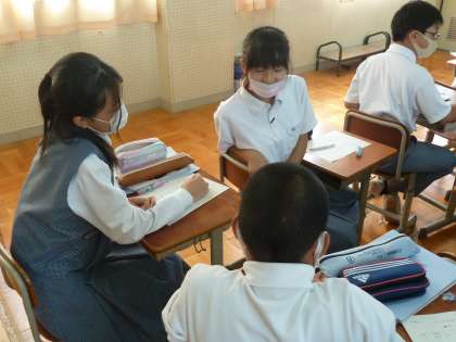 音楽鑑賞(1−2研究授業) 公開日 2020/09/16 更新日 2020/09/16 学校の様子 5時間目、1−2の音楽の授業を教育委員会の先生が参観に来られました。 シューベルトの「魔王」を聴いて、歌手の声色やピアノの音色から情景を想像するという内容。 「ふるえている感じ」「魔王から逃げている」など、各グループでいろいろな交流がなされていました。