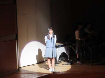写真の真ん中は総合司会者です。また,一番下は部長のSさんです。Sさんは,67名とういう大所帯を,副部長のIさん・Nさんと共にしっかりとまとめてくれました。また,コロナ禍により様々な演奏機会を失いましたが,常に前向きに頑張ろうと部員のみんなを引っ張ってくれました。今年の吹奏楽部は,この定期演奏会が「最初で最後の演奏会」となりましたが,ここまでの頑張りに胸を張ってほしいと思っています。皆さん,本当にお疲れさまでした。