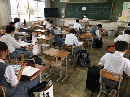 1年生の様子です。「一生懸命はかっこいい!」。藤森中の生徒会が残してくれた言葉です。自然と伝わっていくものですね!