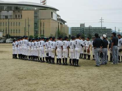 しかし,0−0で迎えた最終回7回の表に,相手に2点を奪われました。そして迎えた7回の裏,走者を出しましたが残念ながらホーム・ベースを踏むことはできませんでした。0−2の惜敗です。「惜しかった!」「悔しい!」の思いも当然あります。しかし,3年生が2名という人数の少ない中,ここまでよく勝ち上がってきました。立派でした。野球部はプレー以外にも,校内でのきびきびとした動作と礼儀正しい爽やかな挨拶に,いつも心癒されました。今後もこの良き伝統を,継承・発展させていってください。3年生の皆さん,3年間お疲れさまでした。また,保護者の皆様,いつも心強い応援にたくさんの勇気をいただきました。心より深く感謝申し上げます。3年間,ありがとうございました。