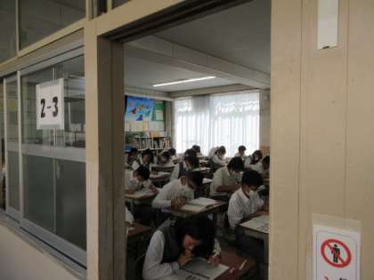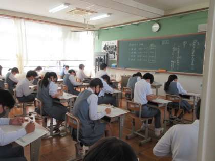 (※写真は上から,2年生・3年生のテスト受験の様子です。)