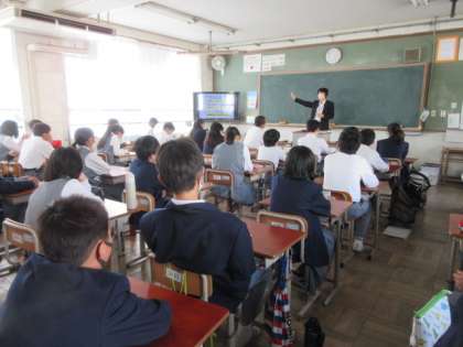 10月26日(月)の6時間目,京都市教育委員会生徒指導課から,また京都府警察本部少年課少年サポートセンター並びに伏見警察署スクールサポーターの皆様にお越しいただき,「1年生 非行防止教室」を各クラスで行いました。