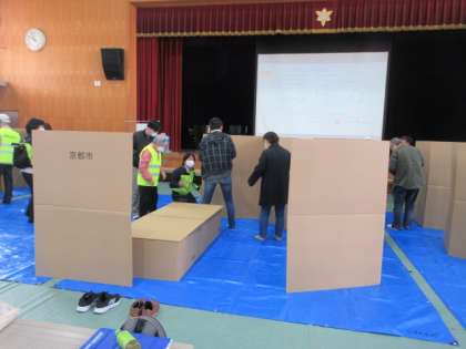 全体を3グループに分けて,「地域の集合場所訓練・普通救命講習」,「段ボールベッドの組立・活用」,「マンホールトイレの組立」の実習訓練が行われました。各訓練場面では,地域の皆様の真剣に説明を聞き入る姿に,防災への高い危機意識を感じました。「地域の安全は地域で守る」「地域住民の命は,地域住民の協力で守る」,そのような熱い思いの感じられた避難訓練でした。今日は半日,お疲れさまでした。