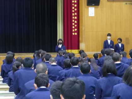 1年生も緊張していたとは思いますが,しっかりとした態度で参加できました。2・3年生も先輩らしく,堂々とした態度でした。教室で参加してくれた生徒と体育館の生徒との一体感もあり,本当に素晴らしい歓迎会になりましたね!みんなありがとう!お疲れさまでした!