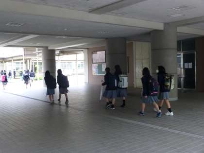 あいにくの雨模様ですが,みんな元気に登校しています!