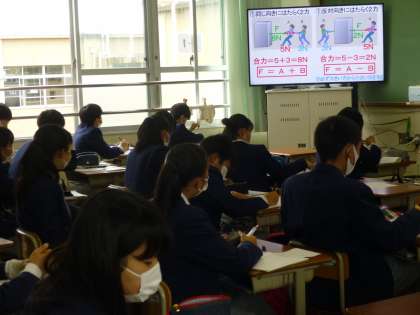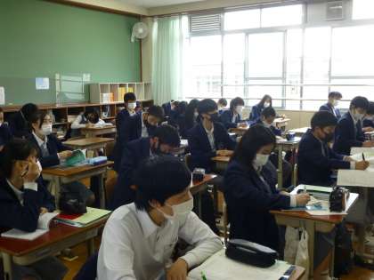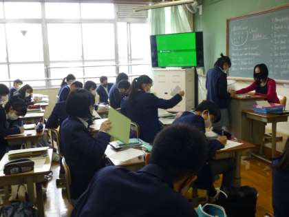 本日3限目,3年生の授業風景です。 3−1は理科,3−2は英語,3−3は英語 です。