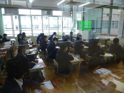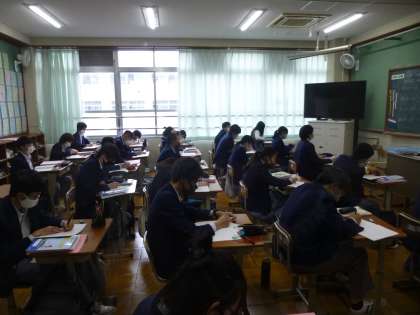 本日3限目,3年生の授業風景です。 3−9・10組ともに数学です。