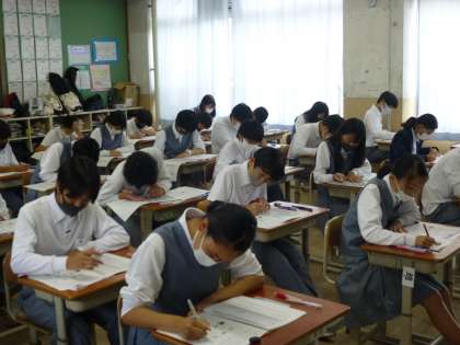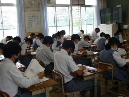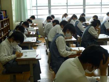 2年生 定期テスト最終日です! 公開日 2021/06/25 更新日 2021/06/25 2年生 本日,定期テストの最終日です。 2年生の予定 1〜2限:学活(自主学習) 3限:社会テ 4限:英語テ 写真は,3限社会テストの様子です。 あと2教科です。もう少しですね! 頑張れ!2年生!