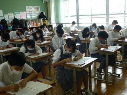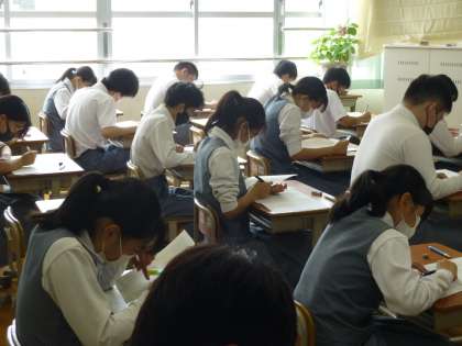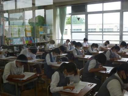 3年生 定期テスト最終日です! 公開日 2021/06/25 更新日 2021/06/25 3年生 本日,定期テストの最終日です! 3年生の予定 1限:学活 2限:英語テ 3限:国語テ 4限:保体テ 写真は3限,国語テストの様子です。 さすがは3年生。すごい集中力です。 最後まであきらめずに取り組みましょう!ファイトです!