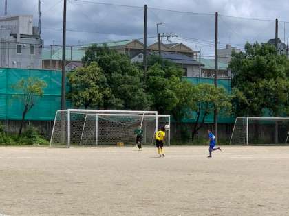 7月18日(日)に3回戦が行われました。梅雨が明け,日差しが痛く感じるほどの暑さの中で行われた試合は,前半に自分たちのミスから失点するものの,すぐにスーパーシュートで点数を取り返し,前半を1−1で折り返します。後半は,一進一退の攻防が繰り広げられ,非常に良いゲームとなりました。試合は後半でも決着がつかず,PK戦にまでもつれ込み,結果5−4で勝利を収めることができました!劇的な勝利に感動し,涙する選手もいました!