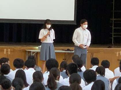 2年生 学年集会 公開日 2021/07/21 更新日 2021/07/21 2年生 2年生のみなさん,1学期間お疲れ様でした! この夏から,いよいよ2年生が中心となって藤森中を引っ張っていくことになります。自覚と責任と藤中の誇りを持ち,みなさんが逞しく成長していくことを期待しています! 写真: 学年集会にて学年目標の再確認や各学級の振り返りをしている様子です。