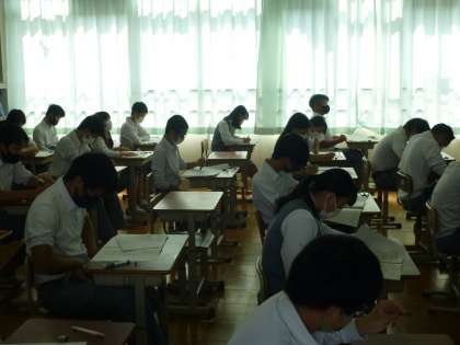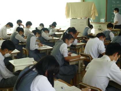 写真は,3年生が数学の問題に取り組んでいる様子です。