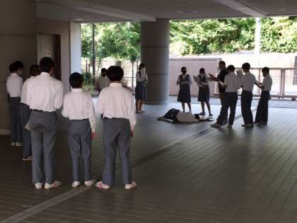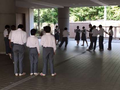 練習している所を遠くから見ていると…「SDGs」とか「鬼!」などのセリフが聞こえてきます。これからも,取材を続けますので,1年生の取組にご期待ください。