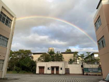 学校に戻ると,虹が皆さんの頑張りを祝福してくれていました。