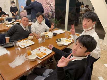 修学旅行1日目24 公開日 2021/11/08 更新日 2021/11/08 3年生 先ほどは,山中湖東照館の夕食の様子でした。こちらは,富士山ガーデンホテルの夕食の様子です。黙食をしながらの食事ですが,カメラの前では笑顔が見られます。メニューはバイキングなので,みんなご機嫌で食事をしています。明日は,ホテルを入れ替えて宿泊しますので食事のメニューが変わります。