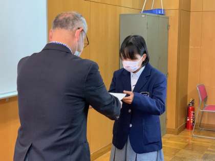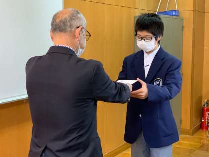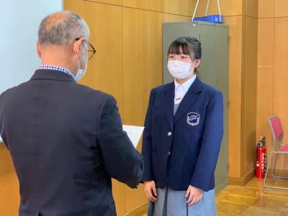 写真は認証式の様子です。 校長先生から直接,認証書を受け取り,認証書の重さを感じているはずです!