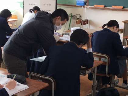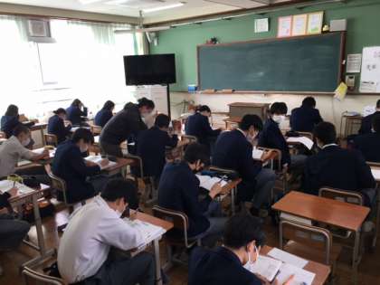 24日からの第4回テストに向け,朝の9時より,「3年生土曜学習会」が行われています。多くの生徒が黙々と学習に取り組んでいます。ノートをまとめたり,問題を解いたり,先生に聞いたりと,学びに対する解決方法はそれぞれですが,目標は1つ,「どのように学ぶか=主体的・対話的で深い学び」です。今日のがんばりは,必ず明日へとつながります。