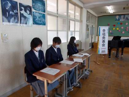 2年生 合唱発表会 公開日 2021/12/03 更新日 2021/12/03 学校の様子 3・4時間目は2年生の合唱発表会でした。 2年生も昨年は体育館での合唱コンクールだったため,まだ一度も本来の合唱コンクールを経験していません。今年はさらに縮小という形になってしまいましたが,その中でも,2年生たちは全力で合唱発表会に取り組んでいました!