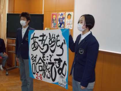 学年集会 公開日 2021/12/24 更新日 2021/12/24 学校の様子 昨日,各学年では,学年集会を行い,2学期と2021年の振り返りを行いました。2学期間も多くの制限や変更があり,新たな形式での取り組みがありました。難しい状況の中で過ごす学校生活を,できる限り良い方向に進められるように,知恵を振り絞った2学期間だったと思います。学年集会で確認したこれまでの反省を生かし,新たな気持で2022年を迎えてほしいと思います!
