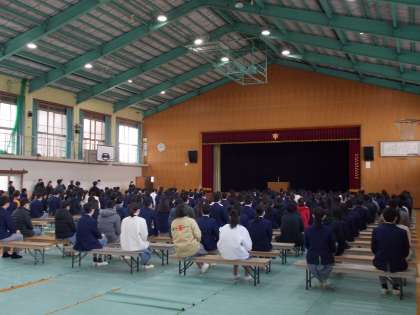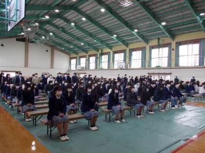 卒業式に向けて 公開日 2022/03/09 更新日 2022/03/09 3年生 3年生は昨日,中期選抜学力検査が無事に終わり,本日から卒業式に向けて練習が始まりました。 3年生にとっては,藤森中学校で過ごす生活はあと4日となります。これまでの中学校生活に思いを馳せながら,一日一日を大切に過ごしてほしいと思います。