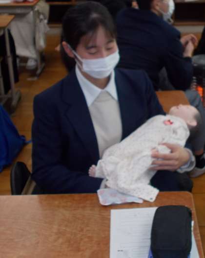 本日,3年生は3・4限に講師の方をお招きし,性に関する学習を行いました。一堂に会して,講演を聴くことはできないため,教室でリモートによる講演となりましたが,3年生は,妊婦体験や赤ちゃんの人形を使用して,新生児・乳児の抱き方などを実践し,多くのことを学んでいました。