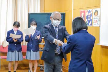 認証式 公開日 2022/04/21 更新日 2022/04/21 学校の様子 本日6時間目に,評議・各種委員会の認証式が行われ,各委員会の代表生徒が学校長より認証状を受け取りました。半年間の生徒会活動,頑張ってください!