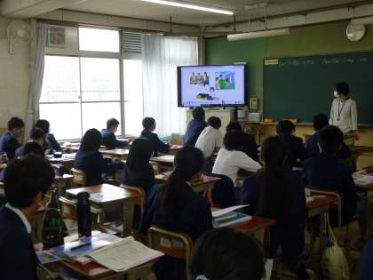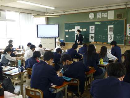 本日3限目,2年生の授業風景(英語・社会)です。 タブレットを使っての調べ学習も頑張っています。