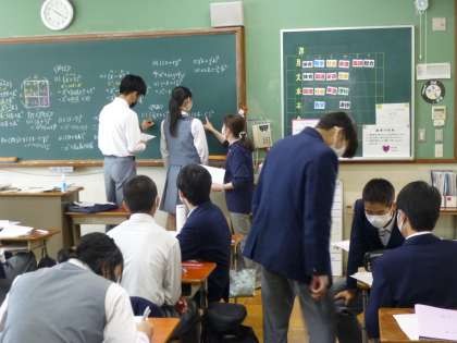 3年生 授業の様子 公開日 2022/04/25 更新日 2022/04/25 3年生 本日2限目,3年生の授業風景(国語・理科・数学)です。 理科の授業では,「自転車で急な坂を下ると,とてもスピードが出てしまうことを説明(図示)できる!」を目標に学習を進めました! みんな頑張っています!