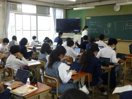 2年生 授業の様子 公開日 2022/04/27 更新日 2022/04/27 2年生 本日2限目,2年生の授業風景(社会・家庭科・英語)です。 社会では調べ学習,家庭科は裁縫,英語はALTの先生と一緒の学習です。 みんな頑張っていますね!