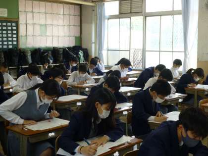 本日,第1回定期テストです。