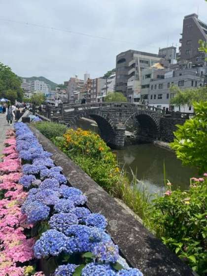 チェックポイントの1つ、眼鏡橋です。 紫陽花も美しいです☺️