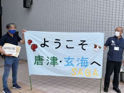 唐津・玄界の方々が横断幕を持ってお出迎えしてくださいました。