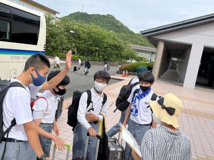 修学旅行2日目 〜民泊スタート!〜 公開日 2022/05/28 更新日 2022/05/28 3年生 コロナの影響で入村式ができない中,緊張した面持ちで一家庭ずつ最初の挨拶をして民泊がスタートしました。