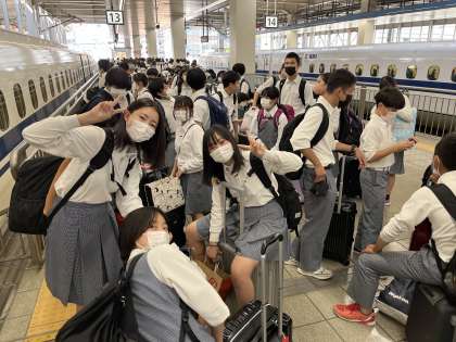 博多駅到着後,子どもたちは体調不良等なくみんな元気です☺️ 新幹線に乗り込んで,予定通り出発しました!