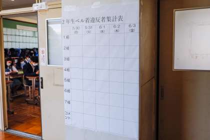 2年生では,今週から「ベル着をみんなで頑張って習慣にしようよ!キャンペーン」が生活委員の主催でスタートしました。