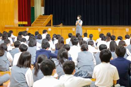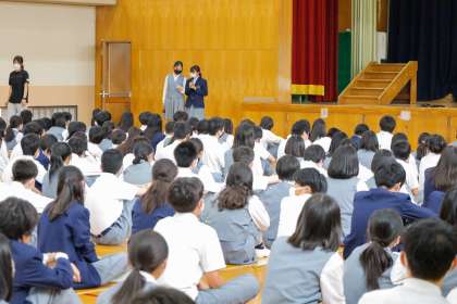 2年生 学年集会1 公開日 2022/05/31 更新日 2022/05/31 2年生 2年生の学年集会を,評議委員さんたちが中心になって進めてくれました。 今回の集会では,各クラスの学級目標を発表しました。 ユーモアあふれる発表ばかりでとても盛り上がりました。
