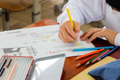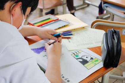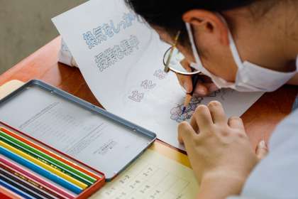 写真は,保健委員さんたちが換気・歯磨きの呼びかけポスターを制作してくれている様子です。