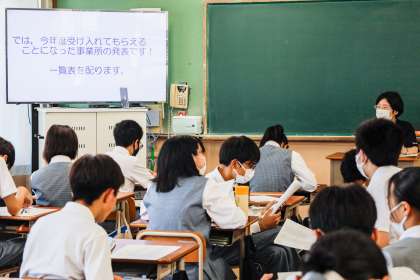 2年生 総合学活 公開日 2022/06/29 更新日 2022/06/29 2年生 月曜日に引き続き,本日5時間目に,生き生きチャレンジ学習の説明がありました。 今回は,お待ちかねだった、今年受け入れてもらえることになった事業所の発表があり,どのクラスでも盛り上がっていました。