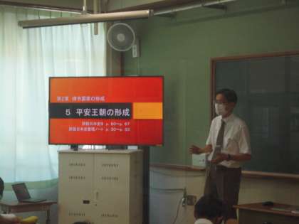 今日、3年生では、京都文教高等学校の先生方が中学校に来校して、出前授業〔高校での授業と私立高等学校に関する講話〕をしていただく企画がありました。