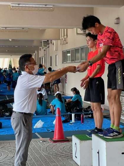 8月7日〜8日の日程で,陸上の近畿大会が奈良市鴻池陸上競技場で開催されました。男子3000mに本校より出場したO君が見事,優勝を果たしました。記録は8’42”61とすばらしいもので,大会記録にあと少しと迫る好タイムでした。