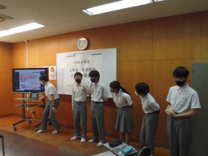 三年生の発表は、クイズ形式を取り入れるなど、さすが最上級生と感じるとても楽しめる発表でした。各教室で視聴した2年生も、来年度自分たちが取り組む修学旅行の形がイメージできたのではないでしょうか。すてきな発表をありがとうございました。