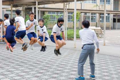 各クラスの男子2チーム/女子2チームが,制限時間の3分以内に跳べた最高回数を競います。