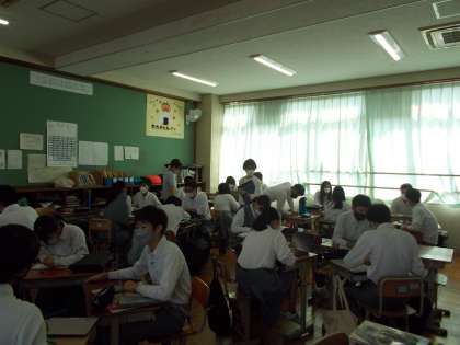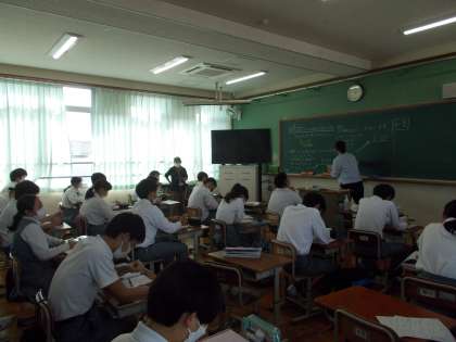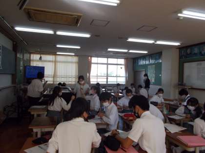授業では、生徒同士がお互いに意見を出し合い、学習内容を理解し、深めていきます。