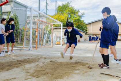 2年生 体育科 公開日 2022/10/20 更新日 2022/10/20 2年生 2年生体育では,走り幅跳びも行っています。 跳ぶ人,測定する人,土をならす人,それぞれ役割を交代・協力し合いながら活動している姿が素敵でした☺