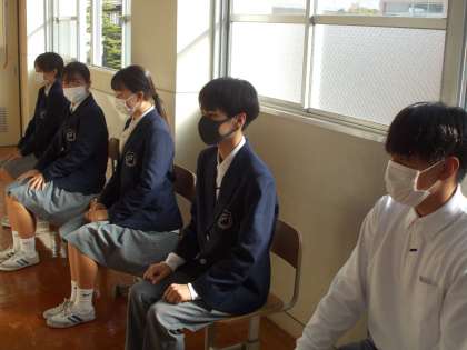 3年生 面接練習 公開日 2022/11/02 更新日 2022/11/02 3年生 3年生は、5・6時間目に面接練習を行いました。 高校受験の面接本番に向けて、まずは学年内で取り組みました。 今日のできは、自己採点で何点だったでしょうか? 写真は面接直前の会場前で待機する様子