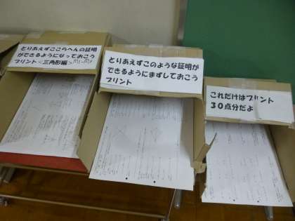 廊下には、自主学習用の数学のプリントが置かれていました!今日から部活動も停止になります。授業に集中するのはもちろんのこと、放課後の時間を大切に、有効活用してくださいね!頑張れ!藤中生!