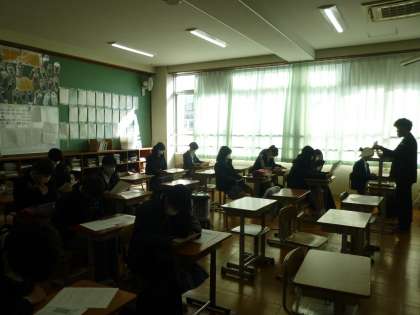 3年生は本日6限目に前日指導を行いました!昨年に引き続き、全体での集合はせずに、各教室で、まずは担任の先生から入試全般の心構えや注意事項を聞きました。そして、そのあとは受験校ごとに集合し、交通手段や持ち物等の確認を行いました。みんな緊張した面持ちでしたが、明日、しっかりと力を発揮してくれることと思います。